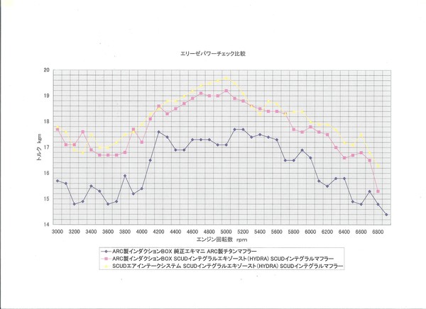 低回転から高回転まで全域でエンジントルクを向上させることができ、ピークパワーも圧倒的です。